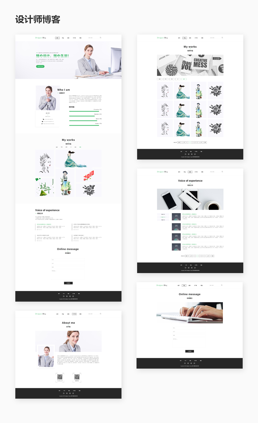 每周模板更新(8月第一周)哈喽~大家好,每周模板更新时间到啦! 本周共上线模板3套,其中电器维修1套、电工电器1套、设计师博客1套 以下是模板预览图和设计说明: 电器维修(tj_1700) 此套电器维修使用安全色绿色,绿色是一个能给人带来安全感的颜色,暗示着我们的服务安全有保障,增加信任感。此套模板 依次展示了公司信息、服务保障、服务项目、服务流程、维修师傅、客户评价、位置信息等,让用户选用后只需更改内容,网站即可上线。 电工电气(tj_1691) 本套电工电气采用红色为主色,主要展现行业从业人员的热情态度,首页展示了产品分类,产品展示,解决方案,关于我们,新闻中心等重要信息。模板布局上简单大气,各种业务有明确的导航指引,方便用户查询。 设计师博客(tj_1687) 整套模板的色调选用了给人以清爽感觉的绿色,页面整体以大面积灰色为底色,配以黑字,与白色空白构成了高端的黑白灰,大气的感觉自然呈现出来了。页面排版比较简单明了,个人博客是用来总结经验、梳理思路的好工具,简单的排版更能很好用来展示作品,记录设计经验。 手机/小程序预览图: 本周就介绍到这里啦,下周会带来更多精美模板~ 戳连接查看更多模板:http://zhineng.800t.cn/dom/my_jz/myTpl.php?username=bananqu&channel_id=0&Version=2016 |