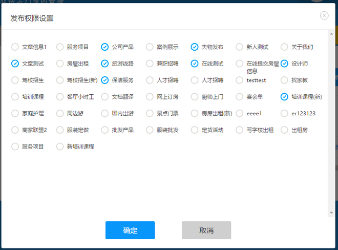 发布权限设置:那个管理员可以发布那些栏目信息等