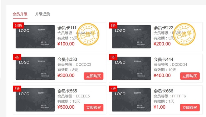 会员卡有效期,会员购买会员卡后,会员卡到期后直接将会员等级回退成“普通会员”和“普通会员”对应的会员卡~